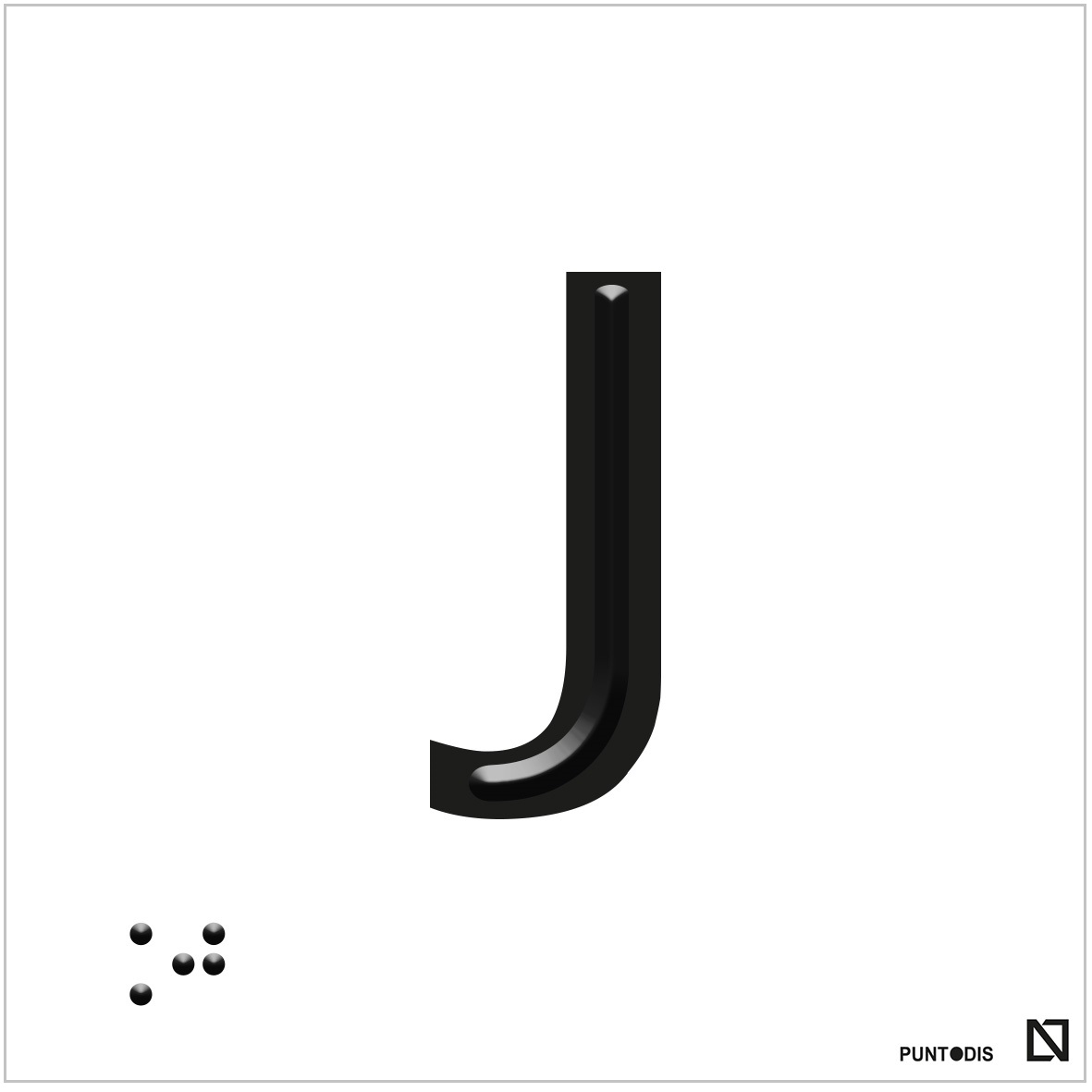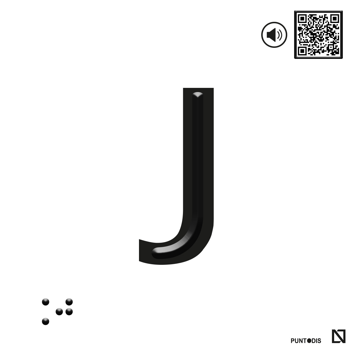 Placa con la letra J en braille y altorrelieve sobre aluminio. Este rótulo accesible tiene braille y altorrelieve centrado en el trazo, cumpliendo la legislación de la promoción de accesibilidad. Esta placa accesible es perfecta para la señalización de plantas y puertas en edificios, ascensores y otras aplicaciones similares.